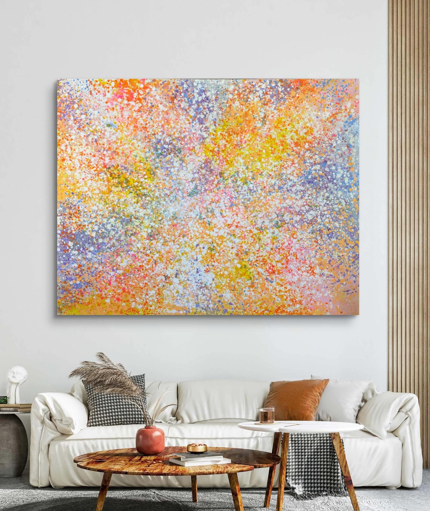 Энэхүү уран зураг нь өнгөөр дамжуулан байгалийн улирлын солигдол, байгалийн амьд эрч хүч, уур амьсгалыг нэгэн цогц мэдрэмж болгон харуулжээ. Тод, дулаан шар улбар өнгөөр эрч хүч, өөдрөг мэдрэмж, баяр баяслыг төрүүлж, харин цэнхэр нил ягаан туяанууд нь сэтгэлийг тайвшруулж, тэнцвэрт мэдрэмж өгнө. Олон жижиг хэсэг хөдөлгөөн нь дотоод идэвх, бүтээлч сэтгэлгээг өдөөж, хүний сэтгэлд…
